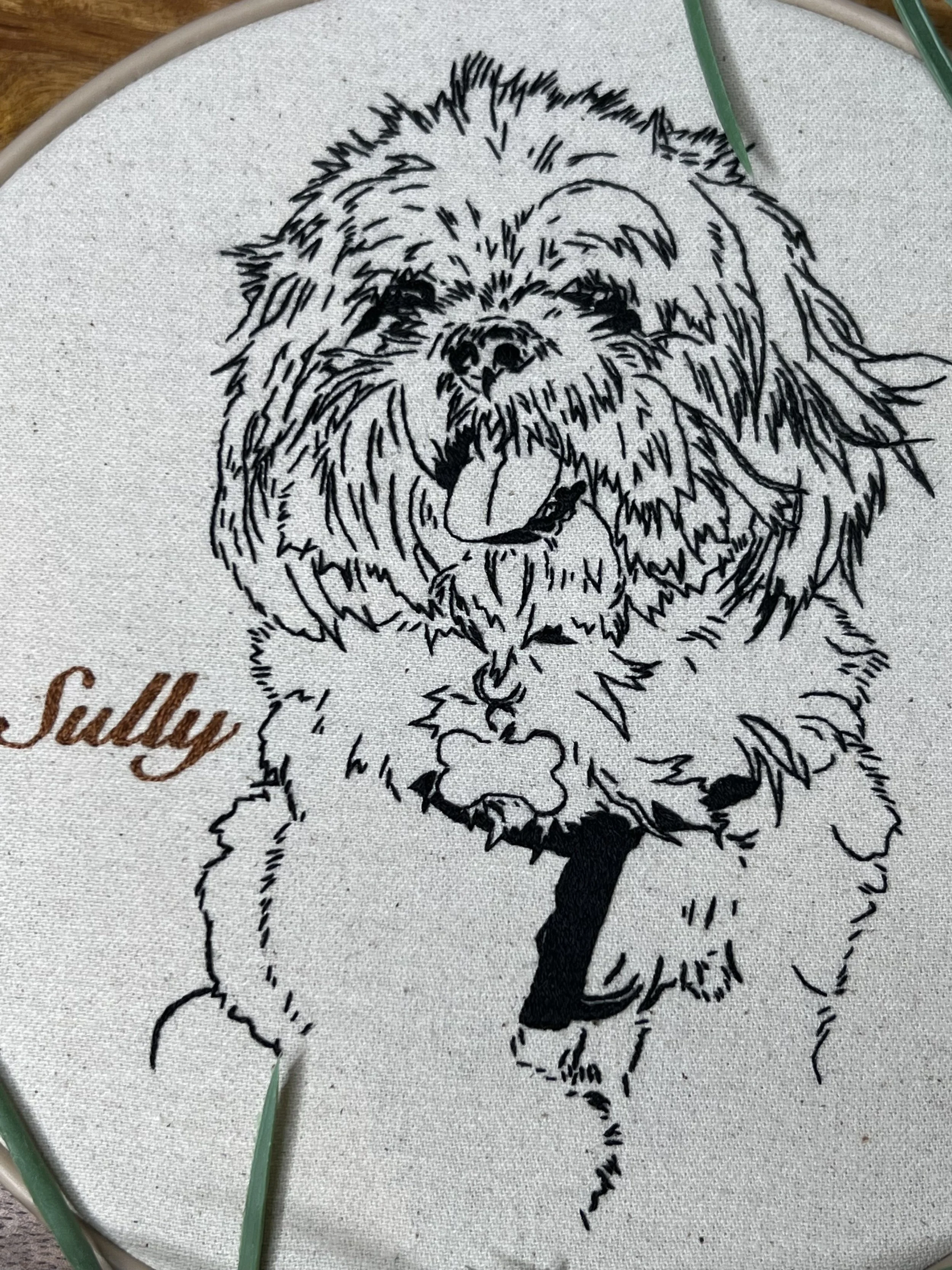 Thread painting is the main technique I use in my art, it consists of taking a single strand of thread and “shading” between different colors to create a seamless blending effect, 100% of my pieces will have Thread painting within the base piece already, however if we want to add additional items in the portrait other than the main focal point then this will be considered an “additional Thread Painted Element” In example if I am working on a portrait of a cat I can also add in some of its favorite toys as an upcharge, another example would be if I am doing a portrait of a turtle, I can have the turtle surrounded by a certain type of flower in which case the flowers would be an upcharge. Popular in Pet & Animal Portraits