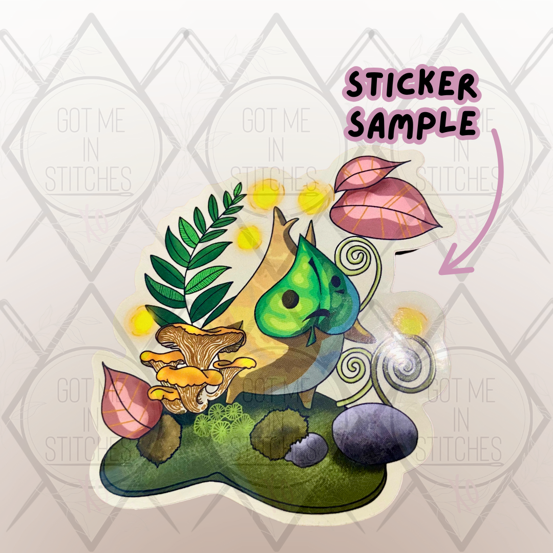 This hand embroidery piece is a vibrant and charming piece of art featuring Evee, the beloved Pokémon, joyfully trotting down a winding golden path, the scene is set in a bright whimsical landscape with lush, textured greenery and colorful stitched flowers on either side of the path. A soft pastel rainbow arches across the pale lilac sky in the background, adding a magical, dreamlike feel to the scene. The embroidery is framed neatly in a top-of-the-line beechwood wooden hoop topped with a rustic cream-colored bow and backed with felt.